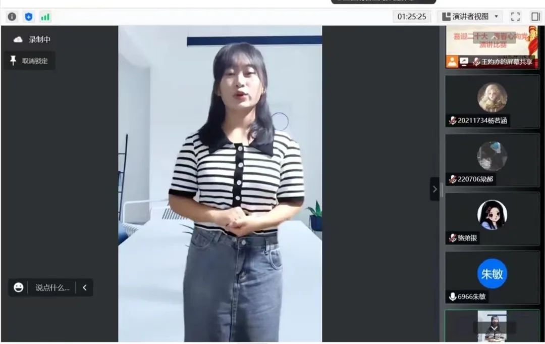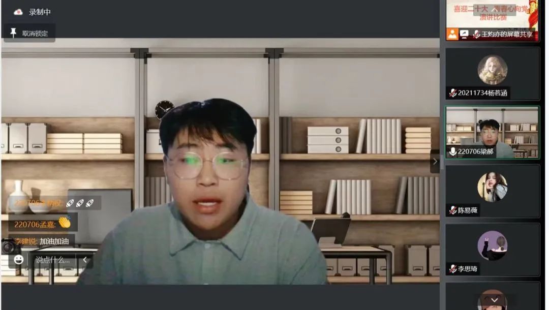 新闻网讯(通讯员 马静了营造活跃和谐的学院文化氛围,积极推动国产视频 精神文明建设,展现新生们的良好风貌,厚植爱国主义情怀,国产视频 于9月12日举办“喜迎二十大·青春心向党”演讲比赛,本次比赛采取“云演讲”形式,2022届全体同学参加了此次比赛。