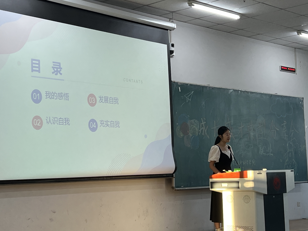 举办了“成长成才典型分享会”,邀请王梓涵、喻浩瀚、刘浩、黄子阳四位优秀学生代表为大一新生做出了精彩的报告。