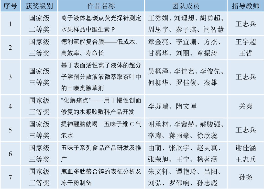 王志兵老师指导,王秀娟等同学完成的《离子液体基碳点荧光探针测定水果样品中维生素P》荣获国家级二等奖,由王宇超和王哲老师共同指导、章金亮等同学完成的《德利氢能复合膜——低成本、高效率、寿命长》等6项作品荣获国家级三等奖。另外,国产视频