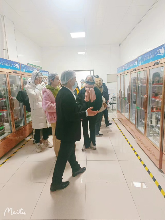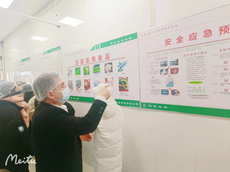 为了让同学们更加了解食堂,食堂姜经理带领学生参观了食堂后厨,在进入食堂前,要求工作人员必须佩戴帽子。走到里面时,看到地面以及桌面都十分的干净,并且有严格的卫生管理。每个食物上的标签都详细地列出了日期、食材和配料,令人一目了然。