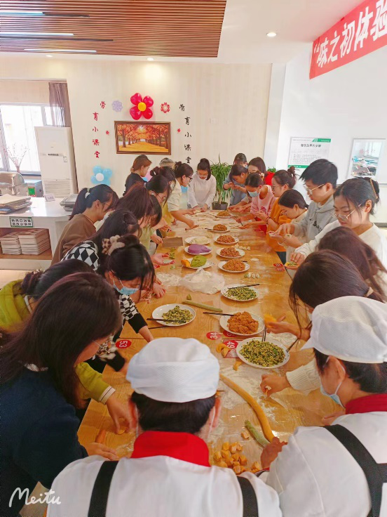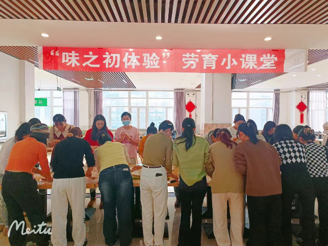 于南湖校区三楼教职工餐厅开展“味之初体验”劳育小课堂之包饺子劳动实践活动,国产视频