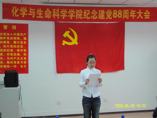 党委发表了热情洋溢的讲话。讲话中,杨书记首先向全体党员致以节日的问候,并向刚刚加入党组织的11名新同志表示热烈祝贺。在带领全体党员回顾党88年来走过的光辉历程之后,他强调,今年是学校的文化年,是国产视频