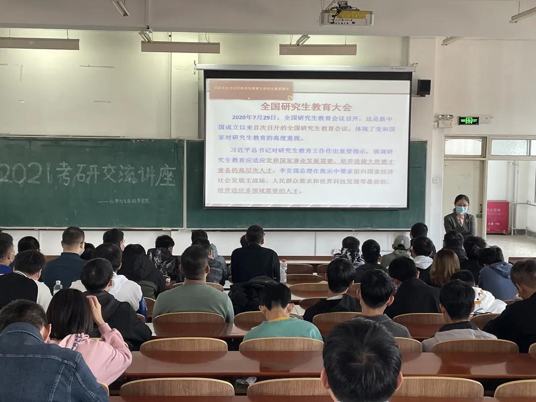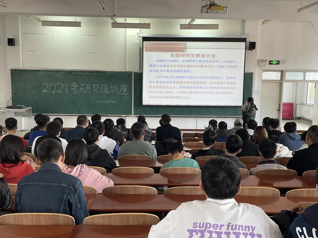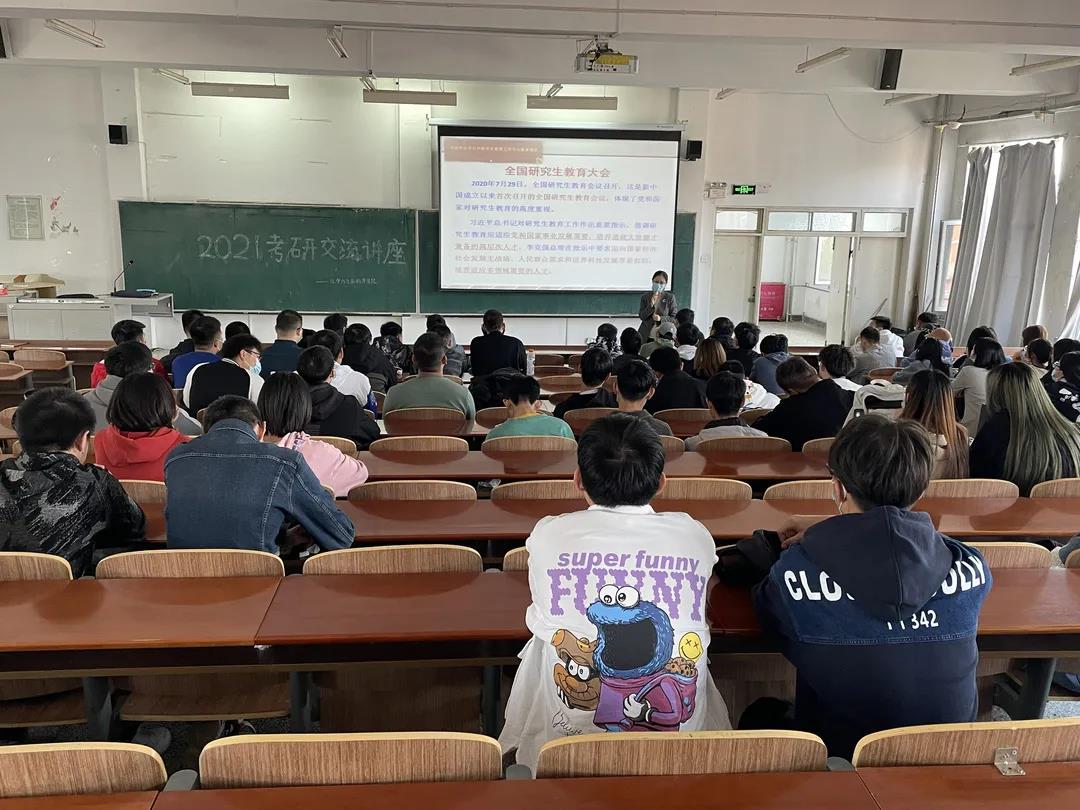 考研基本信息,并提醒同学们要密切关注相关学校的网站发布的信息,及时地了解相关学校的基本情况,并针对考试类型的变化及时作出相关调整。最后孙国英副院长结合自己之前考研的经验给所有意愿参加考研的同学们指明了大概的学习方向和关注角度,同时孙国英副院长希望意愿考研的同学们能够珍惜时间,把握机会,规律作息,为考研做足准备,以积极乐观的心态迎接考研这一巨大挑战。