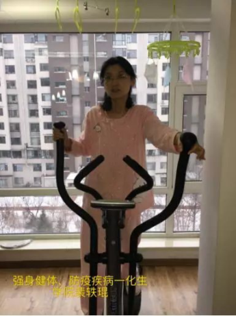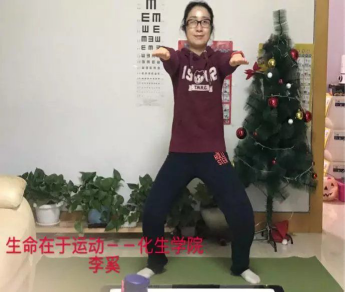 在家中的她们上得厅堂,下得厨房,她们不仅在教书育人的工作上兢兢业业,更是以自己的行动作为表率,用青春活力的姿态向化生学子传递了积极向上的思想。着既是纪念第110个妇女节,亦是传递宅家运动的积极防疫心态,在此次战“疫”的关键时期,化学学院的女神们用自己的力量,自己的方式,为武汉加油!为中国加油!