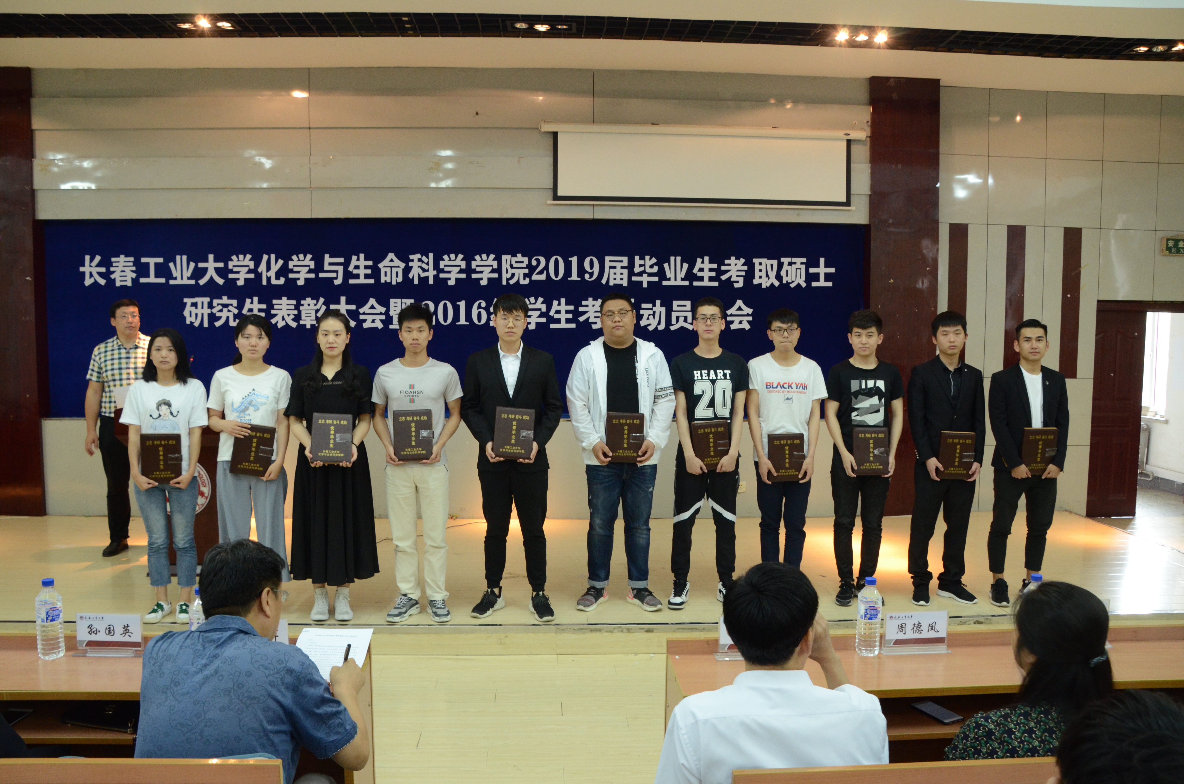 化学有生命科学学院关于表彰2019届毕业生考取硕士研究生的决定》。与会领导为受表彰学生颁奖,丁鹏等5名优秀毕业生代表分享了考研经验。