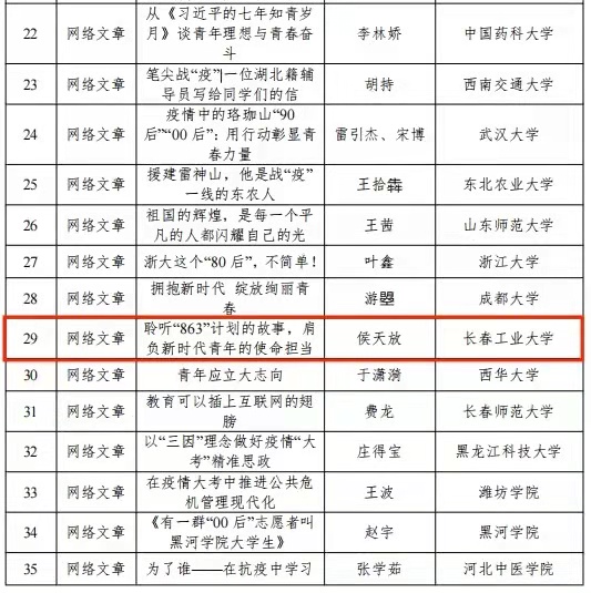 在第五届“全国高校网络教育优秀作品推选展示活动”中共有2项作品获奖。由学院辅导员侯天放撰写制作的网络文章、微课两项作品在第五届“全国高校网络教育优秀作品推选展示活动”荣获优秀奖。