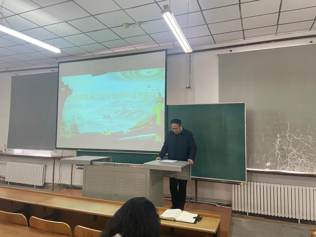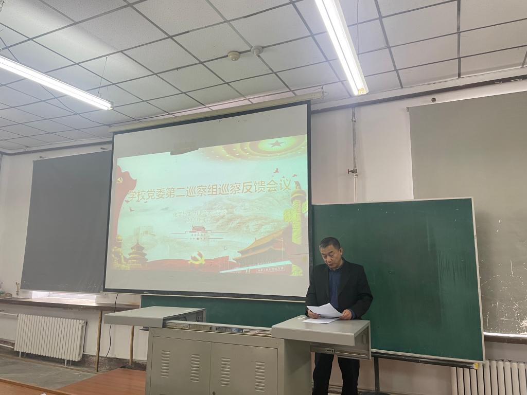 党委反馈巡察情况。党委第二巡察组组长李海峰传达了学校党委书记、巡察工作领导小组组长孙长智同志关于巡察工作的讲话精神,并对抓好巡察整改工作提出要求。党委第二巡察组副组长邹邵岩向国产视频