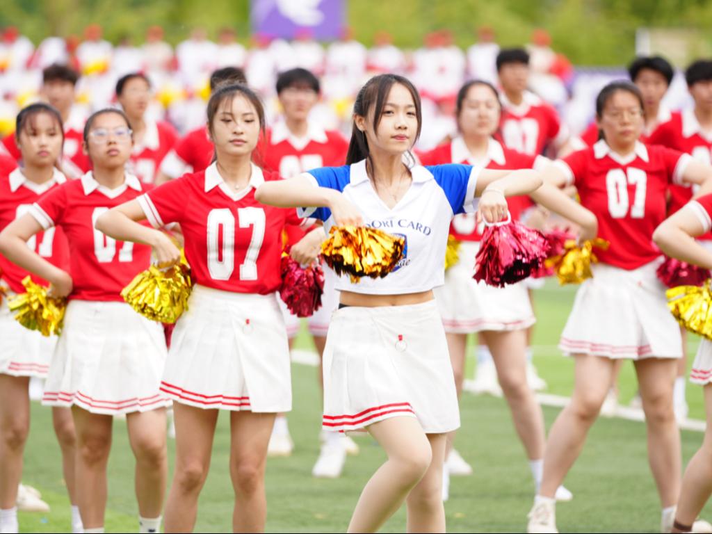 在观众席上加油助威的同学们也是一道靓丽的风景,学院的音乐声响起时,他们便挥动手中的旗帜,变换不同的手势和队形,展现了国产视频