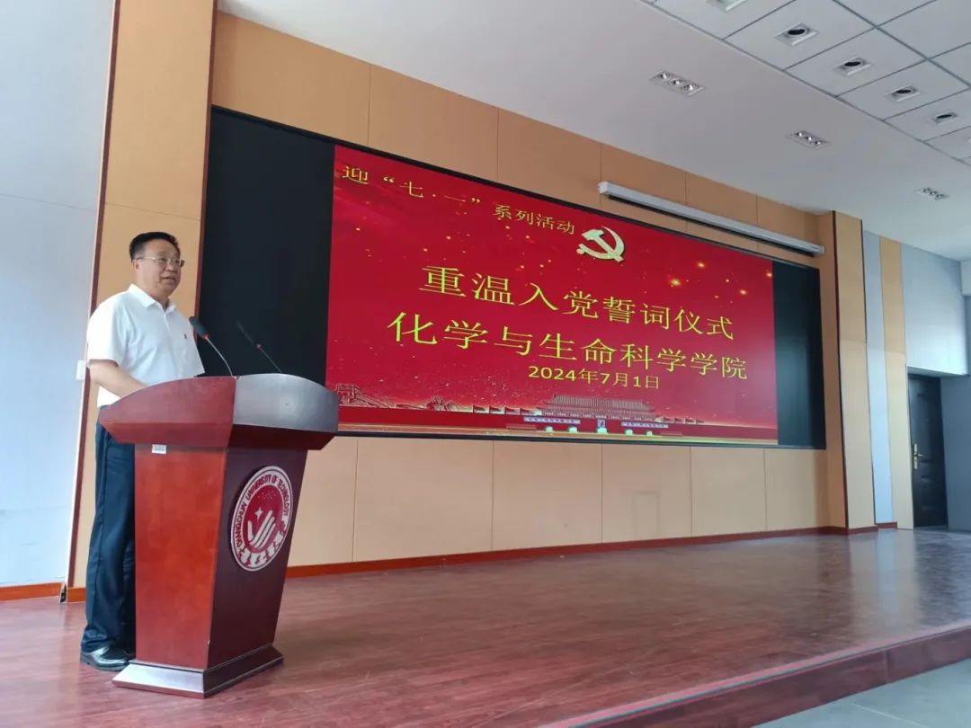 重温入党誓词对每一名党员都是一次思想的洗礼、心灵的震撼,更是大家向党和人民再一次作出的庄严承诺。希望每位党员都能牢记今天重温的入党誓词,在今后的工作、学习和生活中,践行党员的宗旨和义务,不忘初心,砥砺前行,为校院各项事业高质量发展、教育强国建设和民族复兴伟业贡献化生力量。