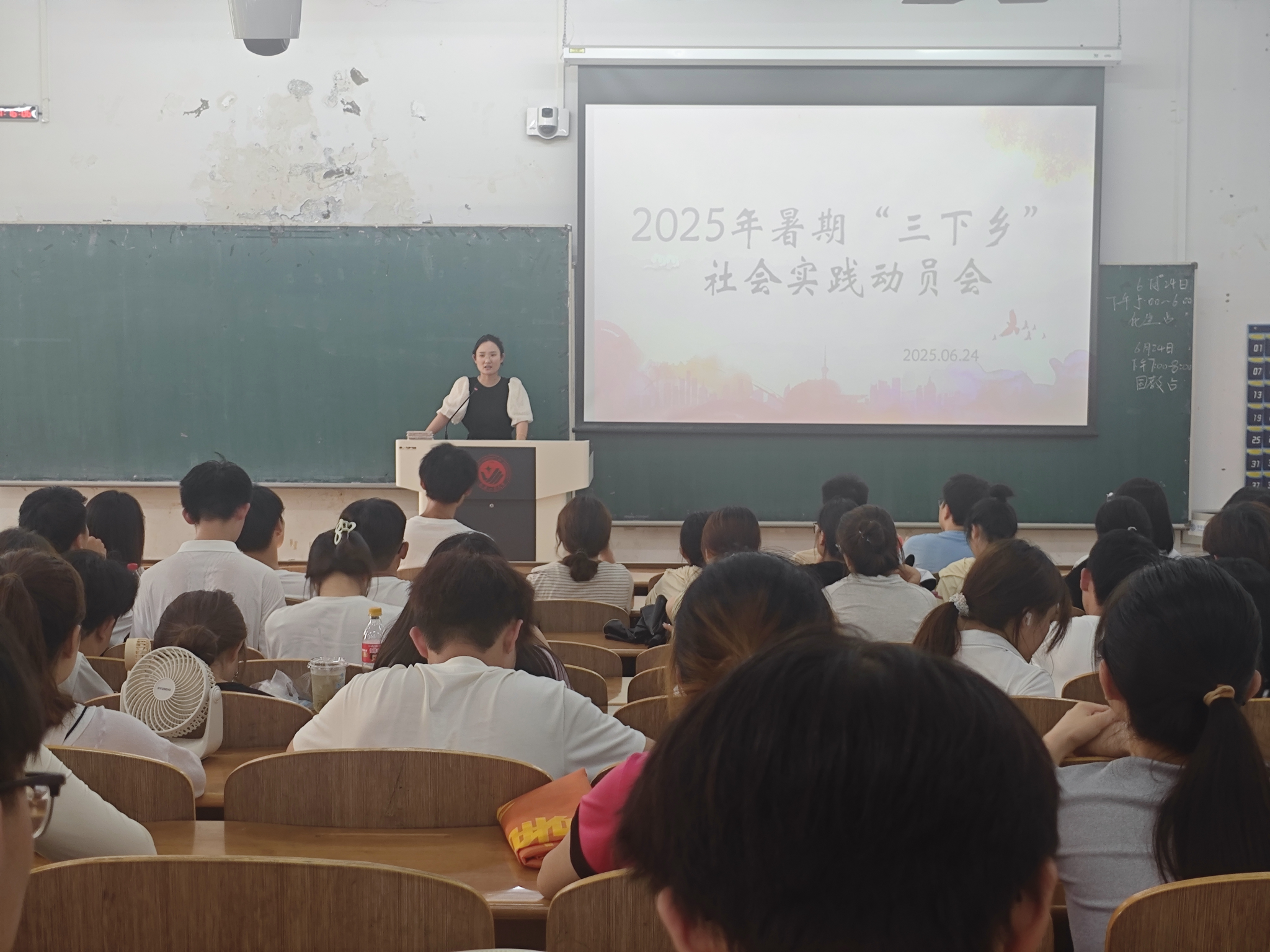 学子的社会责任感与使命感,激发同学们积极投身基层、服务社会的热情,确保暑期“三下乡”社会实践活动顺利开展,6月23日学院开展了2025年“三下乡”暑期社会实践动员大会。本次大会由学院团委书记李秀绒主持,学院各年级主要负责人以及有意向参与实践的负责人参加了此次大会。