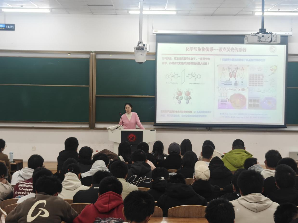 活动中,学院教师依次登台,围绕各自科研团队的研究领域、核心课题、技术平台及成果转化等内容展开详细介绍,同时分享个人研究方向与学术特色,涵盖化学合成、生物制药、环境监测、分子生物学等多个前沿领域。讲解过程中,教师们语言凝练、重点突出,既展现了科研工作的专业性与创新性,也为学子们搭建了与导师面对面沟通的桥梁。