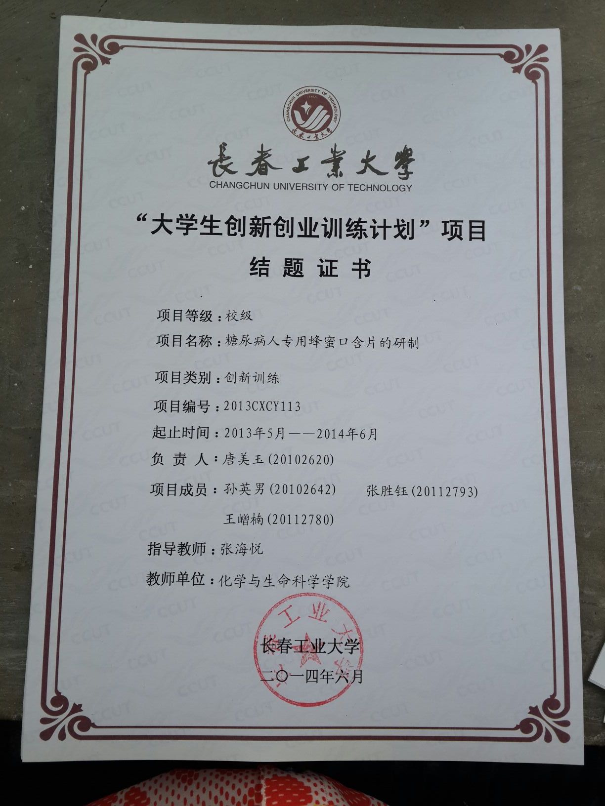 2013-2014大学生创新创业训练计划结题证书