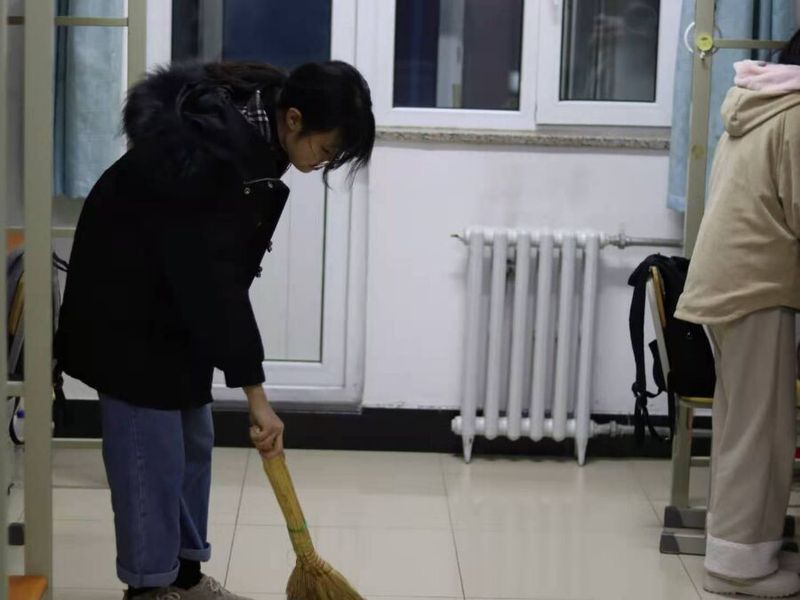 在本次劳动实践活动中,同学们热情激昂,全身心投入到寝室打扫工作。各位同学收拾床铺、整理桌面,打扫地面、清理死角,一丝不苟,全心全意,只为更快更好地创造出一个温馨舒适的生活环境。