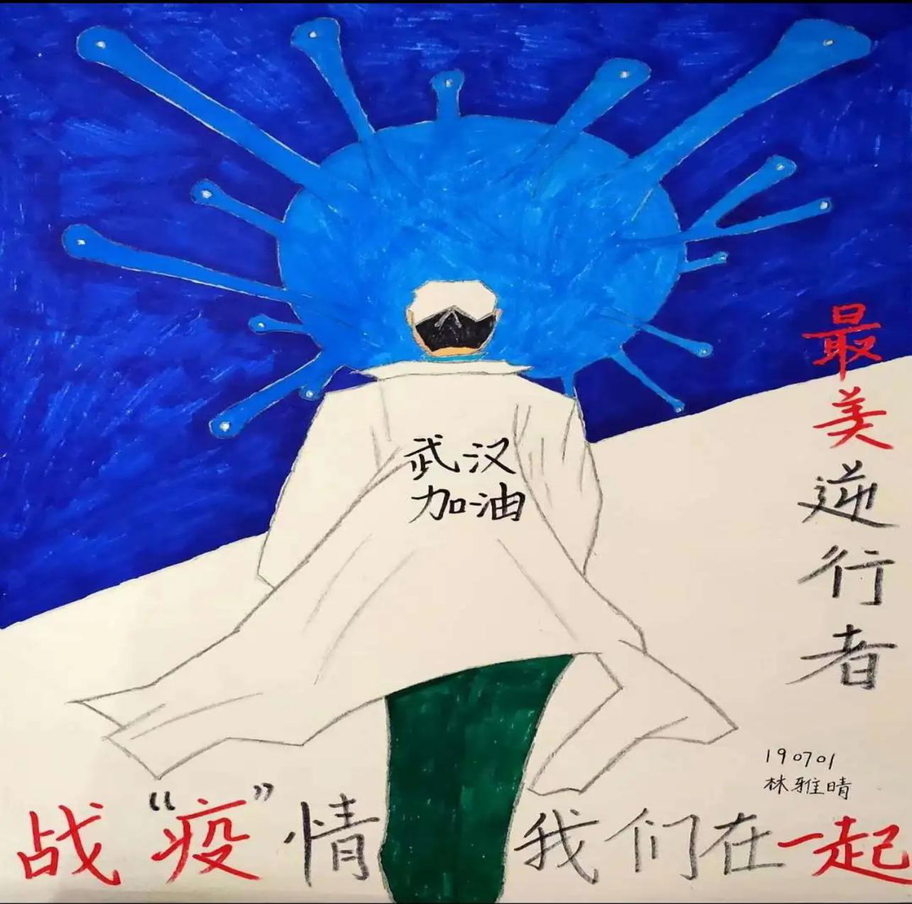 学子采用了视频,书法,绘画,音乐等方式传达了新时代青年大学生防疫,战疫,抗疫的决心和信心。利用新媒体网络平台,用文字书写逆行者的故事,礼赞共赴难关的抗疫英雄;用绘画描绘奋战一线的抗疫战士,纪念抗疫英雄的英勇身影;用视频传达同心战疫的决心,表现青年完善自身提升自我的蓬勃力量。