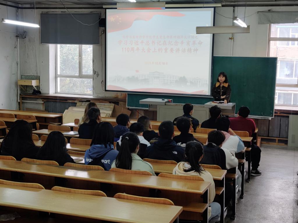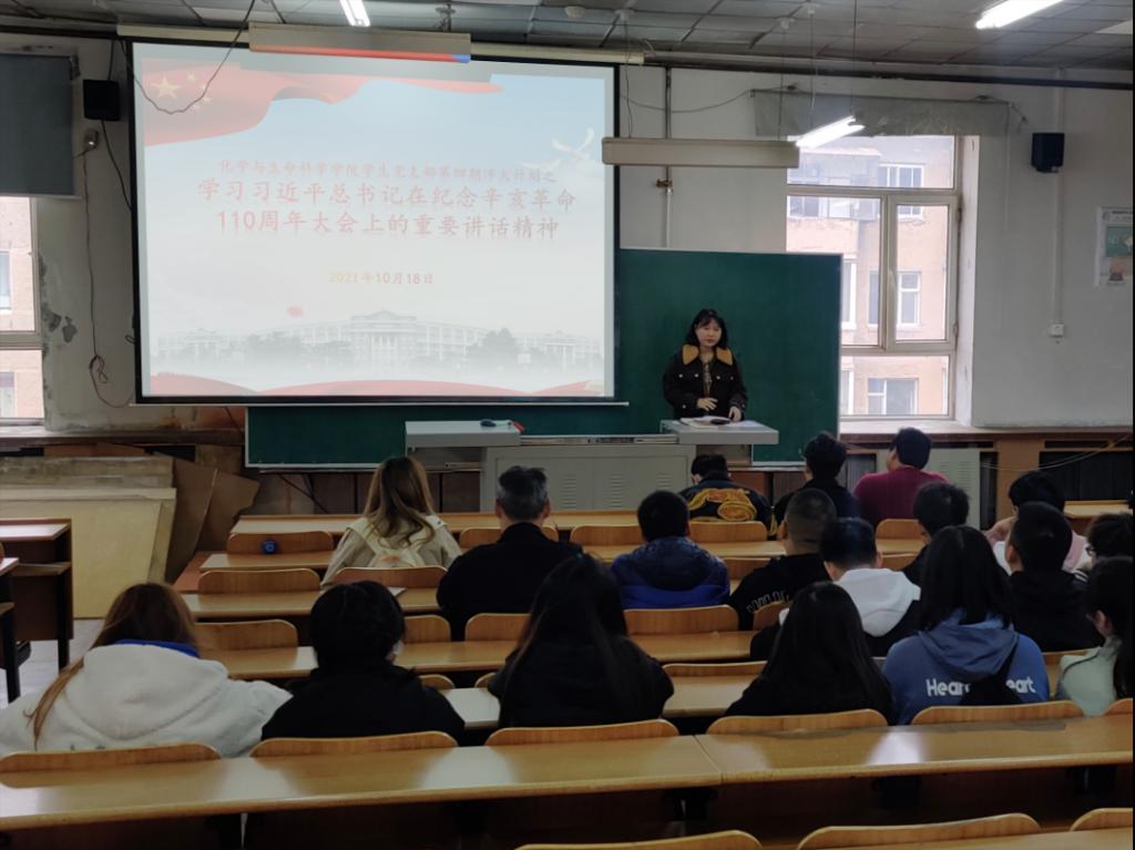 2021年10月9日,为纪念辛亥革命110周年,中共中央总书记、国家主席、军委主席习近平在北京人民大会堂发表重要讲话。110年前,以孙中山先生为代表的革命党人发动了震惊世界的辛亥革命,推翻了清朝政府,结束了在中国延续几千年的君主专制制度,近代以来中国发生的深刻社会变革由此拉开了序幕。这是中国人民和中国先进分子为实现民族独立、人民解放进行的一次伟大而艰辛探索。辛亥革命的发生,有着深刻的社会历史背景,是近代以来中国社会矛盾激化和中国人民顽强斗争的必然结果。中华民族是世界上古老而伟大的民族,有着5000多年源远流长的文明历史,为人类文明进步作出了不可磨灭的贡献。今天,经过长期奋斗,实现中华民族伟大复兴具备了更为完善的制度保证、更为坚实的物质基础、更为主动的精神力量。前景光明辽阔,但前路不会平坦。我们要以史为鉴、开创未来,在全面建设社会主义现代化国家新征程上继续担当历史使命,掌握历史主动,不断把中华民族伟大复兴的历史伟业推向前进。经过近代以来的长期艰苦奋斗,中国人民创造了令世界刮目相看的伟大成就,迎来了民族复兴的光明前景。实现中华民族伟大复兴是全体中华儿女的共同光荣,也是全体中华儿女的共同使命。侯天放老师在会议中向学生党员讲述了“四讲四有”合格党员标准,希望同学们明确“四有四讲”的基本要求(讲政治、有信念,讲规矩、有纪律,讲道德、有品行,讲奉献、有作为),并严格对照落实,要坚守初心、牢记使命,践行“四讲四有”做一名合格党员,以只争朝夕、时不我待的紧迫感,振奋精神,开拓进取,创新奉献,努力拼搏。