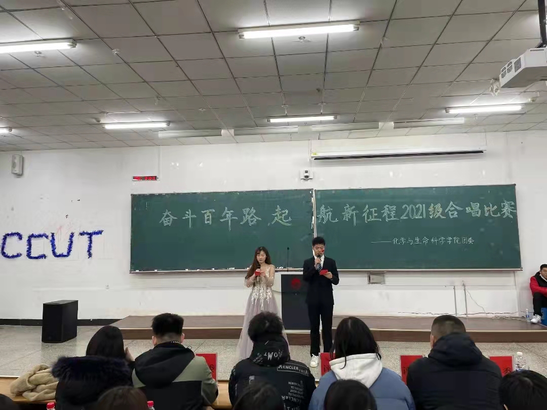 于北湖校区西阶102开展以“奋斗百年路,启航新征程”为主题的合唱比赛,所有2021级同学参与比赛。