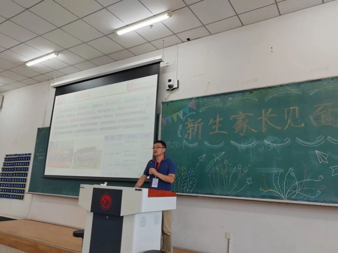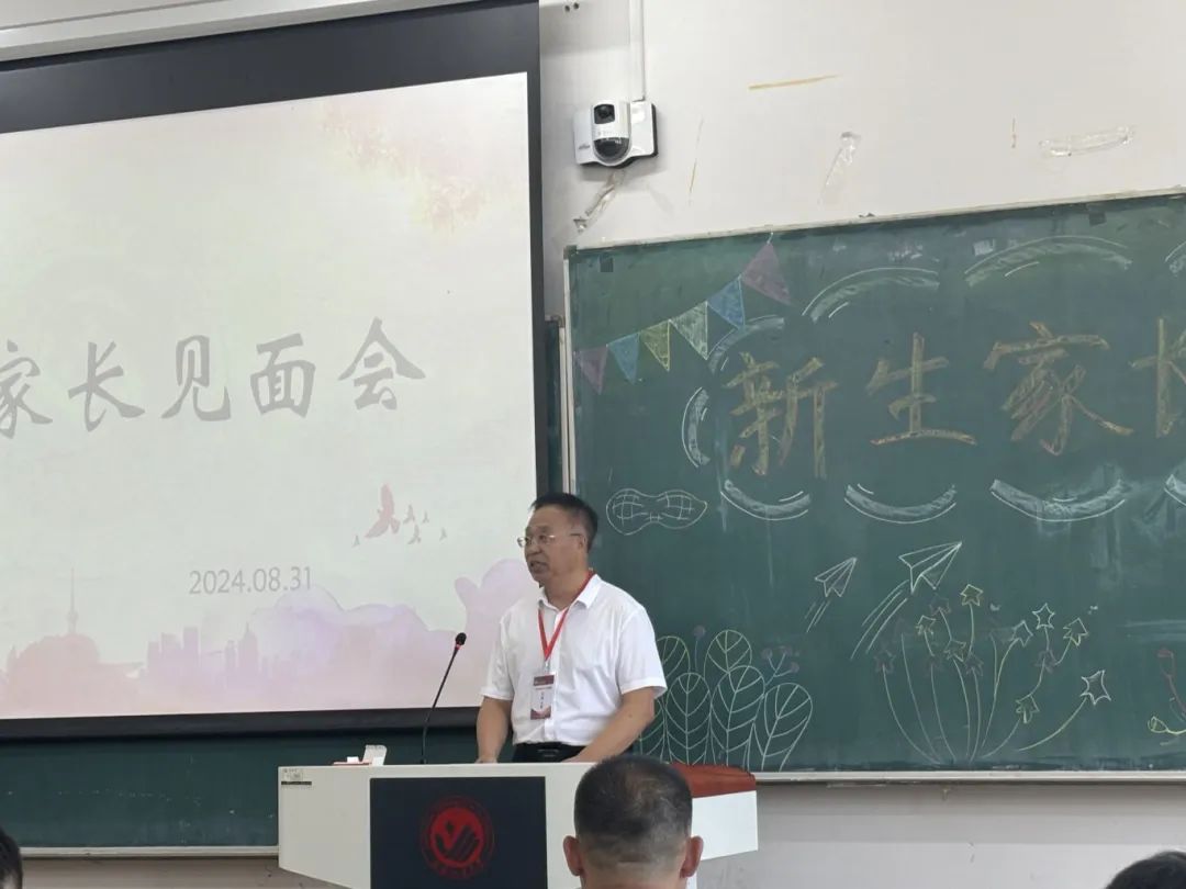 于主楼东阶201举办2024级新生及家长见面会,由24级新生辅导员李秀绒老师主持会议,学院党委书记朱兴国,院长王哲,学院党委副书记郑岩,副院长刘宇,23级辅导员刘扬老师以及新生家长参与此次会议。