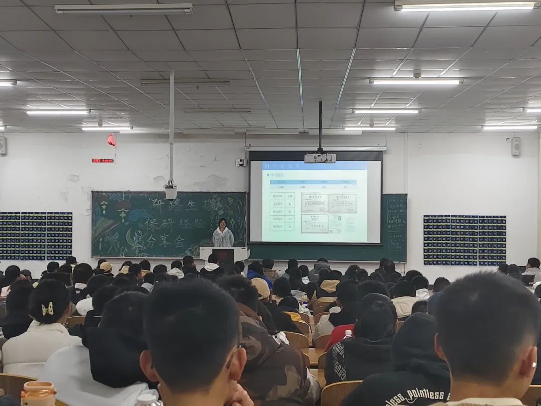 保研经验分享会于西阶梯教室101隆重举行,2021级崔佳雪,王宁二位保送研究生同学为大家分享自己的保研经历与学习经验,旨在让大一同学能够树立正确学习目标,营造优良学风氛围,2024级全体学生参加了本次会议。