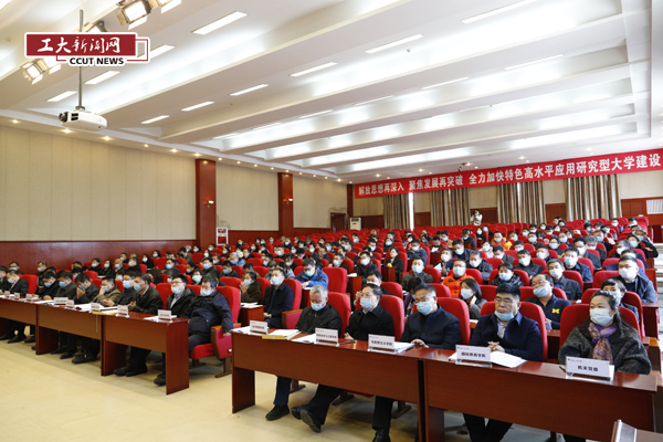 王忠在讲话中指出,刚刚过去的2020年,是极不平凡的一年。这一年,全校上下坚持以习近平新时代中国特色社会主义思想为指导,坚持和加强党对学校工作的全面领导,统筹推进疫情防控和事业发展,全面启动特色高水平应用研究型大学建设,推进学校“十三五”规划圆满收官,有力维护了学校改革发展稳定大局,推动学校事业站在了新的历史起点上。这一年,我们全体教师潜心教书育人、引领师德师风,全体干部职工忠诚履职尽责、锐意改革创新,全体学生勇担时代使命、践行全面发展,全体工大人迎难而上、砥砺奋进,付出了艰辛努力,扛过了大疫大考,经受了大风大浪,交出了优异答卷。这些成绩的取得实属不易。