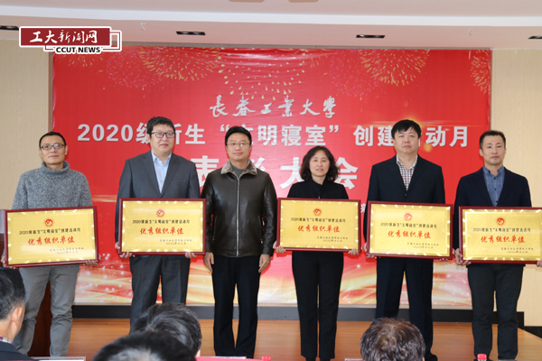 周文军宣读了《关于表彰2020级新生“文明寝室”创建活动先进集体和优秀个人的决定》。化学工程学院等5个单位被评为“文明寝室优秀组织单位”,王颖群等6名同志被评为“优秀指导教师”,北湖西区雅逸苑527等252个寝室被评为“文明寝室”,杨开等252名学生被评为“优秀寝室长”,张博等80名学生被评为“优秀学生个人”。与会领导为受表彰师生代表颁奖。